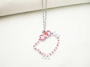 Order LARGE SILVER CRYSTAL HELLO KITTY FALLING OUTLINE PINK STONE BOW NECKLACE - Read More Customer Reviews