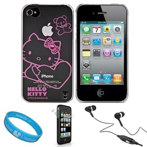 Order Clear Pink Hello Kitty Crystal Hard Case Back Cover with Rhinestone Adornment for Apple iPhone 4S / iPhone 4 + Clear Screen Protector + 3.5mm Black Hands free Noise Reducing Headphones with Mic + SumacLife TM Wisdom Courage Wristband - Read More Customer Reviews