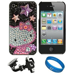 Order Hello Kitty Black Diamond Heart Rhinestone Case for Newest Apple iPhone 4S Latest Generation and iPhone 4 (4th Generation) + Universal Headrest Tablet Mount + SumacLife TM Wisdom*Courage Wristband - Read More Customer Reviews
