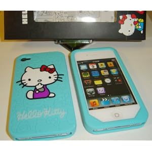 Order Hello Kitty Light Blue Soft Silicone Embedded Back Case Cover for the Apple iPhone 4 4G 4S, New in Retail Box + Free Clear Front Screen and Back Film Protectors + 6pcs Hello Kitty Design Home Button Stickers - Read More Customer Reviews