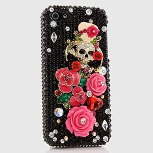 Order Luxury 3D Swarovski Crystal Diamond Bling Black Skull Red Roses Design Front & Back Case Cover for iphone 5 (Handcrafted by BlingAngels) - Read More Customer Reviews