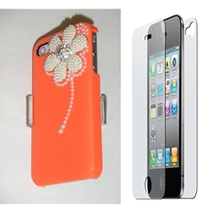 Order Premium Quality (ORANGE) 3D Daisy Flower Pearl Glitter Diamond Hard Cover Case Fits All Carriers: AT&T, Verizon, Sprint (iPhone 4S or iPhone 4) With " Boundle With 1pc. Front Clear Screen Protector & 1pc. Back Case Clear Protector" - Read More Customer Reviews